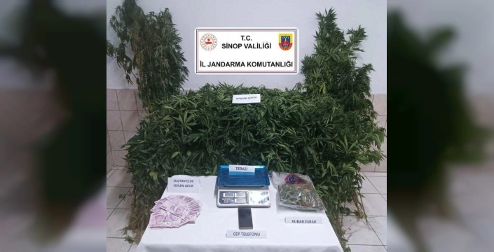 Sinop'un Durağan ilçesinde düzenlenen uyuşturucu operasyonunda bin 299 kök kenevir bitkisi, esrar ve para ele geçirilirken, iki şüpheliden biri tutuklandı.