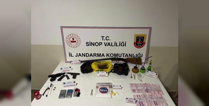 Sinop'ta jandarma ekipleri tarafından gerçekleştirilen operasyonda, çok sayıda uyuşturucu madde, silah ve suçtan elde edildiği değerlendirilen para ele geçirildi. Operasyon sonucunda 2 şüpheli tutuklandı.