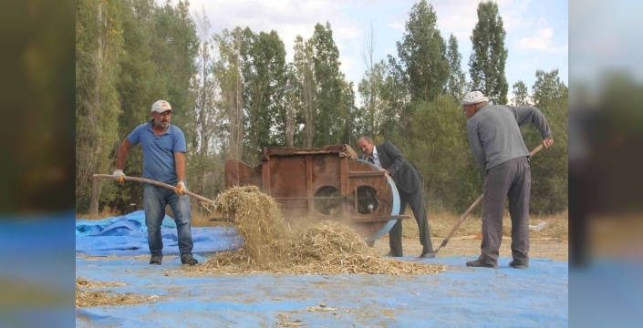 Geleneksel yöntemlerle yılda bir ton mahsul elde ettiklerini belirten Enes Dursun Yılmaz, "Fasulye savurmak için kullandığımız bu makine yaklaşık yüz yıllık. Atıl bir şekilde duruyordu. Yaklaşık 8 yıl önce bunu tamir ettik. Kuru fasulye çıkarma işlerinde savurma makinesi olarak kullanıyoruz. Dövülmüş fasulye otlarını denesinden ayırmak için kullanıyoruz. Şuan bu makinelerin yerlerine patos kullanılıyor. Ürün olarak savurma makinesi daha temiz çıkarıyor. Patosta kırma riski oluyor, fasulyeleri kırıyor. Bunda kırma sorunu yok, fakat savurma makinesinin bir zorluğu fasulyeyi iyice harman edip, dövüp, tanesi ayrıldıktan sonra ancak savrulabiliyor ama patosta öyle bir şey yok. Patosta direkt makineye atıyorsun tanesini ayıyor. Bunda önce dövme işleminden geçiriyoruz, ondan sonra bundan savuruyoruz, tanesini ayırıyoruz" dedi.