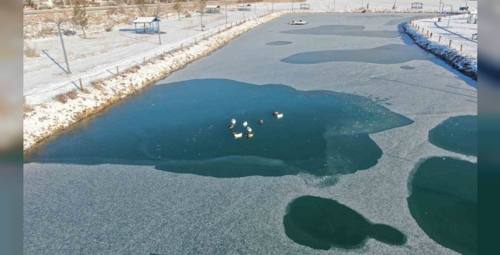 Sivas’ta soğuk hava ördekleri etkiledi, gölet kısmen dondu