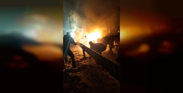 Sivas'ta tır yangınına vatandaşlar kar atarak müdahale etti