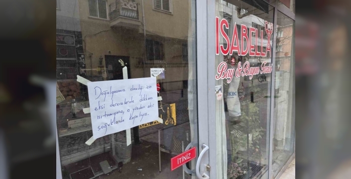 İstiklal Mahallesi Metin Bey Sokak'ta faaliyet gösteren terzi dükkanının camına asılan bilgilendirme yazısı, yaşanan zor durumu gözler önüne seriyor. Yazıda, "Doğalgazımız olmadığı için eksi derecelerde dükkanı ısıtamıyoruz. O yüzden eksi soğuklarda kapalıyız" ifadeleri yer alıyor.