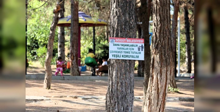 Söğüt Belediyesi, ilçe genelindeki park ve piknik alanlarına çevre bilinci mesajları taşıyan uyarı levhaları yerleştirdi. 'Çevremizi tutalım, yeşili koruyalım' yazılı levhalar, vatandaşları çevre temizliğine dikkat etmeye çağırıyor.