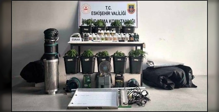 Eskişehir İl Jandarma Komutanlığı'na bağlı ekiplerin, uyuşturucu suçlarıyla mücadele kapsamında yürüttüğü istihbarat çalışmaları, Odunpazarı ilçesinde belirlenen bazı adreslerde yasa dışı yollarla esrar üretimi yapıldığına dair önemli bilgiler elde etti. Bu bilgiler üzerine harekete geçen jandarma, söz konusu adreslerde iklimlendirme sistemleri kullanılarak kenevir yetiştirildiğini tespit etti.