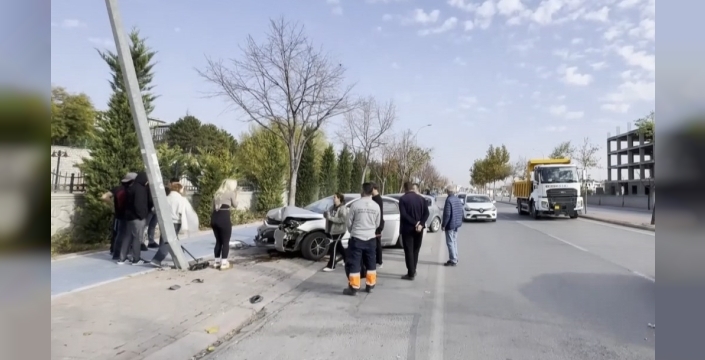 Konya'da, önündeki aracı sollamak isteyen bir sürücünün otomobili, sol şeritte ilerleyen kamyonla çarpıştı. Kontrolden çıkan araç, sollamak istediği otomobile ve bir direğe çarparak durabildi.