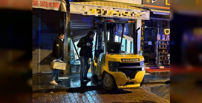 Şok: Forkliftle kuyumcu soygunu! Kepenkler parçalandı, ziynetler çalındı