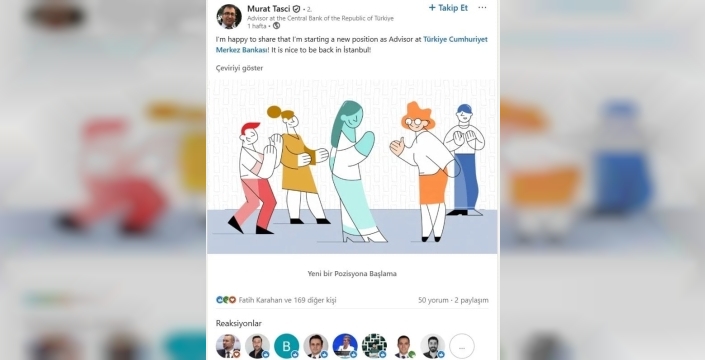 Murat Taşçı, yeni görevine başladığını profesyonel ağı LinkedIn üzerinden duyurarak dikkatleri üzerine çekti. Bu gelişmeyle birlikte Taşçı'nın profilindeki tek paylaşımın bu olması ve hemen ardından tebrik mesajlarının yağmaya başlaması, finans çevrelerinde büyük yankı uyandırdı. Özellikle TCMB Başkanı Fatih Karahan'ın da tebrik edenler arasında yer alması dikkat çekici bir detay olarak öne çıktı.