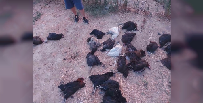 Pazara çıkan Sultan Ocakoğlu, eve döndüğünde komşularından gelen köpek sesleri üzerine kümese gitti. Ocakoğlu, karşılaştığı manzara karşısında şoke oldu; 35 tavuğundan 25'i telef olmuştu. Ocakoğlu, olay yerinden kaçan iki sokak köpeğini gördüğünü belirtti.