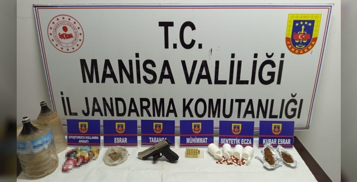Soma İlçe Jandarma Komutanlığı ekiplerinin gerçekleştirdiği iki ayrı operasyonda, toplamda 11 gram yüksek etkili uyuşturucu madde, 42 adet sentetik ecza, 15 gram yüksek etkili uyuşturucu, 32 gram kenevir tohumu, 1 adet kurusıkı tabanca, 36 adet 9 mm fişek ve 3 adet uyuşturucu kullanma aparatı ele geçirildi.