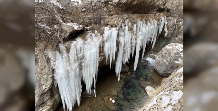 Şuğul Kanyonu'nda devasa buz sarkıtları hayran bırakıyor