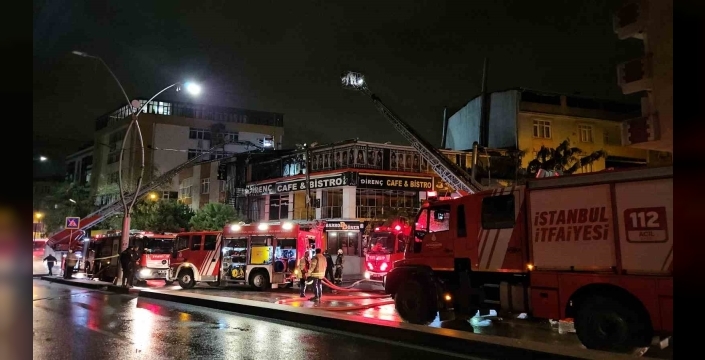 Sultangazi'de gece saatlerinde 3 katlı bir kafenin çatısında çıkan yangın, çevredeki binalara da sıçrama tehlikesi yarattı.