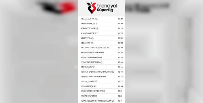 12. HAFTANIN DİĞER SONUÇLARI VE PUAN DURUMU