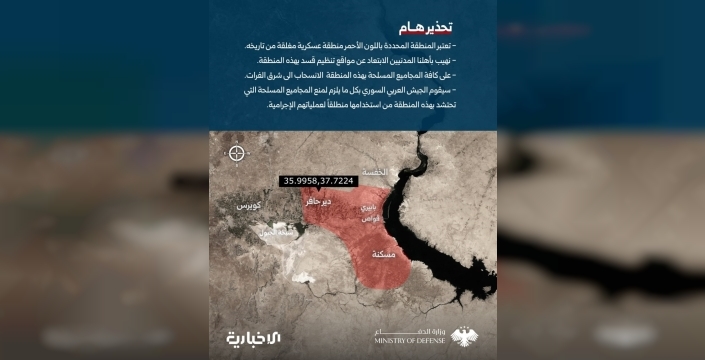 Suriye ordusu, Fırat Nehri'nin batısındaki SDG işgal bölgelerini kapalı askeri alan ilan ederek tüm silahlı gruplara doğuya çekilme çağrısı yaptı.