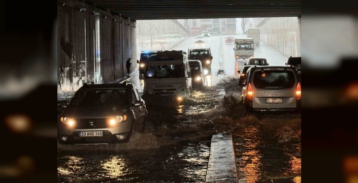 Tarsus'ta etkili olan sağanak yağış, cadde ve sokakları su altında bıraktı. İtfaiye ekipleri, su tahliye çalışmalarına başladı.
