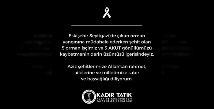 Eskişehir'in Seyitgazi ilçesinde meydana gelen orman yangınında hayatını kaybeden 5 orman işçisi ve 5 AKUT gönüllüsü için Tavas Belediye Başkanı Kadir Tatık, derin üzüntü duyduğunu dile getirdi.