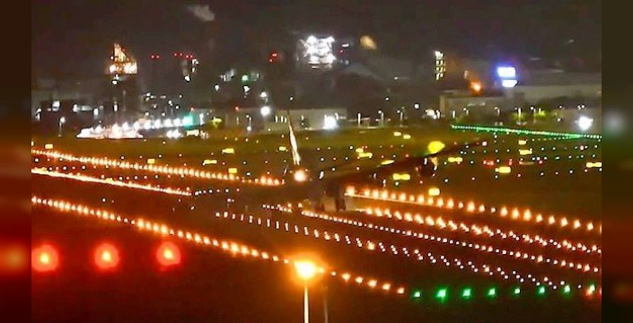 Tayvan Taoyuan Uluslararası Havalimanı'nda, Podul Tayfunu'nun etkisiyle şiddetli rüzgarlar altında iniş yapan bir Boeing 747 kargo uçağı, pistte kanadını sürterek kıvılcım saçtı.