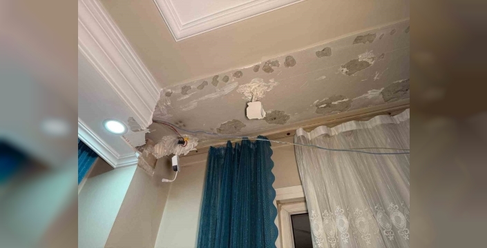Yaşananları aktaran ev sahibi Neslihan Arslan, daha önceki depremde de evde bir hasar olduğunu belirterek, en ufak bir sarsıntıda tavanın çökeceğini düşündüğünü ifade etti. Arslan, "Bugün olan depremden sonra maalesef ki tavan çöktü. Ben evde değildim, oğlum evdeydi. Panikle aradı beni. Allah’tan çocuklar bu odada değildi. Olsa zaten yaralanabilirlerdi. Oğlum panikle aradı evde böyle bir durum var diye. Hemen geldim, içerisi berbat durumdaydı. Bina ile ilgili çok fazla bilgim yok açıkçası. Ama depremden sonra oluşan çatlaklar oldu, bu tavandaki problem de aynı şekilde. Bugün de tamamen çöktü" şeklinde konuştu.