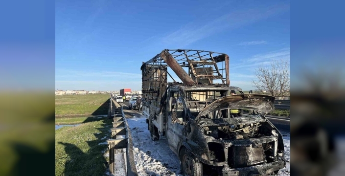 Tekirdağ'da seyir halinde bulunan bir kamyonet, ani bir alevlenme ile alev topuna döndü. Sürücü, olaydan yara almadan kurtulmayı başardı.