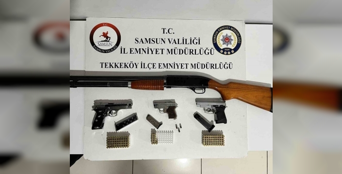 Tekkeköy İlçe Emniyet Müdürlüğü ekipleri tarafından yürütülen çalışmalar kapsamında bir şahsın üzerinde arama yapıldı. Yapılan aramalarda 1 adet 6.35 mm çapında ruhsatsız tabanca, tabancaya ait 1 adet şarjör ve 3 adet fişek, 1 adet 9.19 mm çapında ruhsatsız tabanca, tabancaya ait 1 adet boş şarjör ve 111 adet fişek, 1 adet ruhsatsız pompalı tüfek ile 1 adet kurusıkı tabanca ve tabancaya ait boş şarjör ele geçirildi.