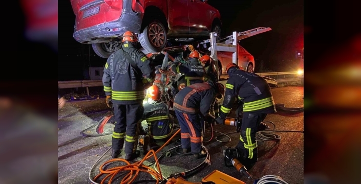 TEM Otoyolu'nun Kocaeli geçişinde, bir kamyonet sürücüsü, arkadan çarptığı tır ile taşıdığı aracın kabine kayması sonucu iki taraftan mahsur kaldı. İtfaiye ekipleri, üstten sarkan aracın düşmemesi için vinçle sabitleyerek titiz bir kurtarma operasyonu gerçekleştirdi ve yaralı sürücü uzun uğraşlar sonucu kurtarıldı.