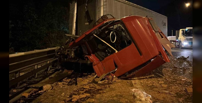 TEM Otoyolu'nda korkutan kaza: Tır şoförü burnu bile kanamadan kurtuldu