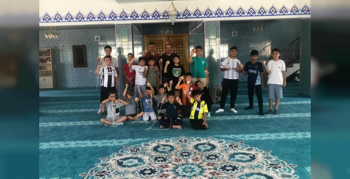 Tercan Halk Eğitim Merkezi Müdürü Yahya Güneş, Hacı Ümit Karahan Camii'ndeki Kuran kursunda eğitim gören 70 öğrenciye topaç ve atlama ipi hediye etti; amacın çocukları dijital dünyadan uzaklaştırıp doğayla buluşturmak olduğu belirtildi.