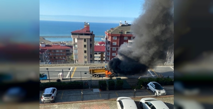 Trabzon'da taş kamyonu yangını paniğe neden oldu