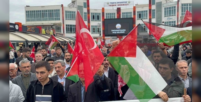 Balkan Yerleşkesi'ndeki Bolca Ana Yemekhanesi önünde toplanan öğrenciler, ellerinde Türk ve Filistin bayrakları taşıyarak Yaşam Merkezi'ne kadar yürüdü. Bu anlamlı etkinlikte, Edirne Trakya’dan Geçerken Topluluğu Başkan Yardımcısı Yusuf Emir Ceyhan, önemli açıklamalarda bulundu.