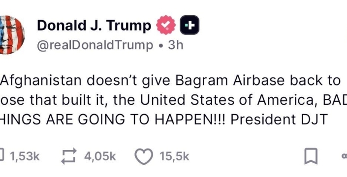 Daha önce de ABD güçlerinin Afganistan'dan çekilmesi sırasında Bagram Hava Üssü'nün terk edilmesini eleştiren Trump, Joe Biden yönetimini bu konuda suçlamıştı. Afganistan ile üssün iadesi konusunda görüşmeler yapıldığını belirten Trump, üssün stratejik önemine dikkat çekti.