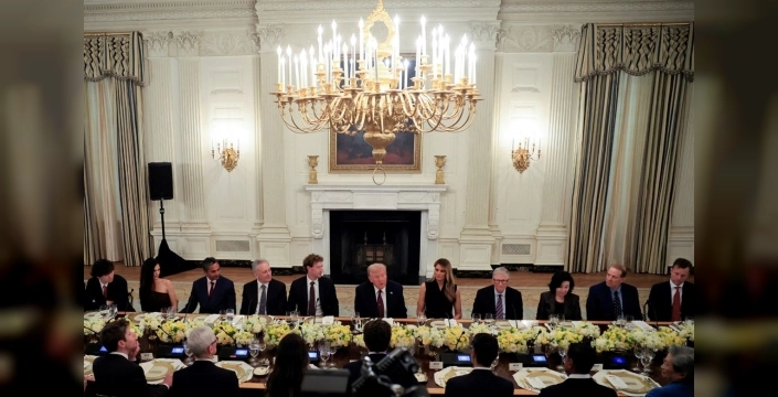 ABD Başkanı Donald Trump, Beyaz Saray'da teknoloji sektörünün önde gelen isimlerini ağırladı. Akşam yemeğine, First Lady Melania Trump da eşlik etti. Toplantı, Trump'ın geçen hafta yenilediği Beyaz Saray Gül Bahçesi'nde gerçekleşti.