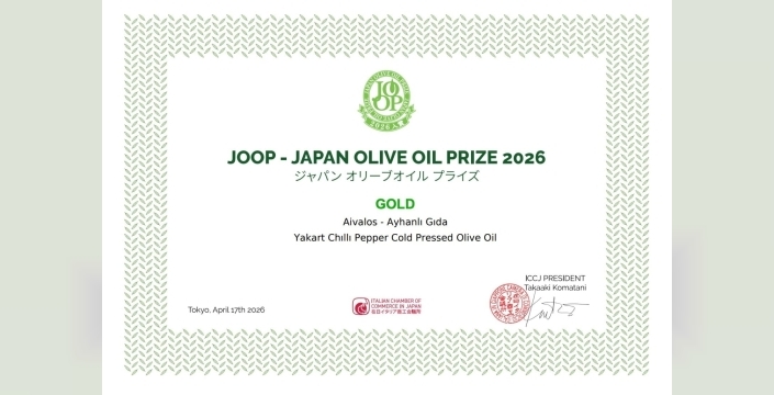 Türk zeytinyağı, Japonya'da düzenlenen prestijli JOOP 2026 yarışmasında "Aivalos Yakart Acılı Biberli Soğuk Sıkım Zeytinyağı" ile Altın Ödül kazandı. Bu başarı, Türk zeytinyağının global pazardaki yerini güçlendirdi.