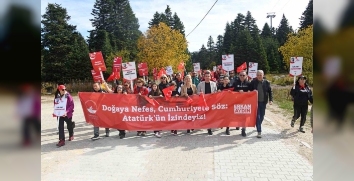 Uludağda yüzlerce kişi cumhuriyet yürüyüşünde buluştu