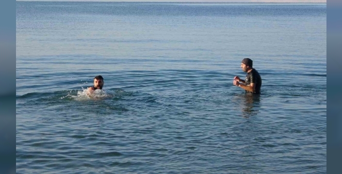 Hava sıcaklığının eksi 9 dereceye kadar düştüğü Van'da, iki öğretmen sıradışı bir etkinliğe imza attı. Van Gölü'nün dondurucu sularına giren Muhammed Türken ve meslektaşı Kamuran Çelik, yüzdükten sonra kar üstünde güneşlenerek görenleri şaşırttı.