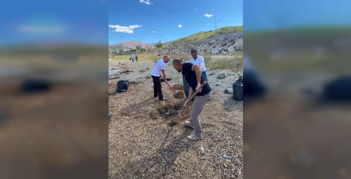 Bitlis'in Tatvan ilçesinde Dünya Kıyı Günü nedeniyle Van Gölü sahilinde temizlik etkinliği düzenlendi.