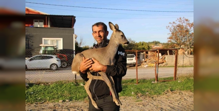 Çanakkale'nin Dümrek köyünde, yangından kaçan bir karaca yavrusu, muhtar Abdülkerim Yavuz'un bakımında köyün sevimli maskotu oldu.Yangından kaçan Karaca, Çanakkale'de köyün sevimli maskotu oldu
