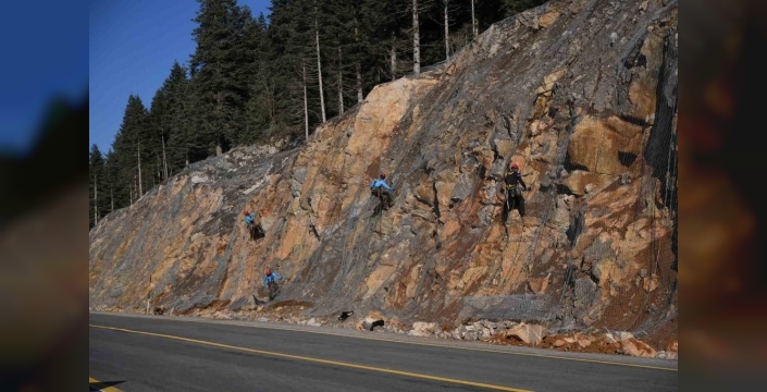 Yaralıgöz Dağı'nda heyelanlara karşı çelik ağlarla güvenlik sağlanıyor