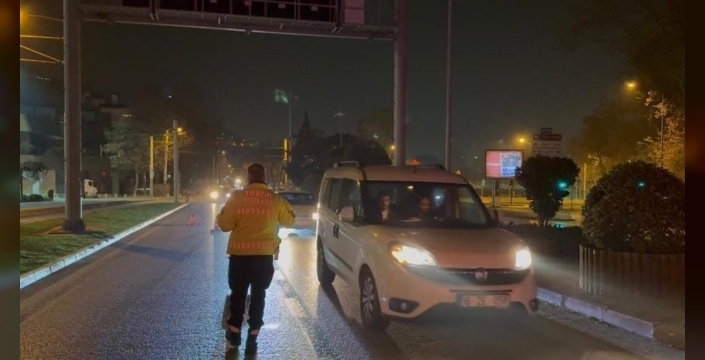 Bursa'nın en işlek caddeleri ve bölgelerinde yılbaşı öncesi polis denetimleri artırıldı. Gece geç saatlerde başlayan uygulamalarda, cadde giriş ve çıkışları kontrollü şekilde sağlandı. Polis ekipleri, araç sürücülerine yönelik kimlik ve evrak kontrollerinin yanı sıra alkol denetimleri de gerçekleştirdi.
