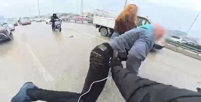 Olayın en dikkat çekici yanı ise, kavgayı ayırmak için yoldan geçen bir kuryenin cesurca müdahale etmesi oldu. Çevredeki diğer sürücülerin de yardımıyla taraflar ayrılırken, Bursa İl Emniyet Müdürlüğü ekipleri görüntülerin ardından kavgaya karışan sürücüleri tespit etmek için çalışma başlattı.