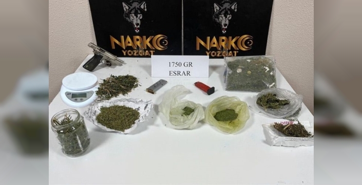 Gerçekleştirilen aramalarda, bin 750 gram esrarın yanı sıra hassas terazi, ruhsatsız bir tabanca ve 55 adet 9,19 mm. fişek de ele geçirildi. Olayla ilgili olarak şüpheliler A.A. ve S.A. gözaltına alınarak işlemlerine başlandığı öğrenildi.