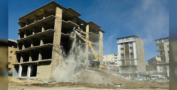 Yüksekova'da 23 yıllık iskelet bina kentsel dönüşümle yıkıldı
