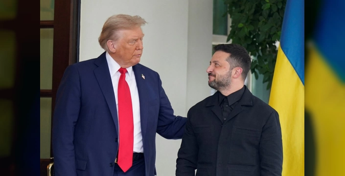 Ukrayna Devlet Başkanı Volodimir Zelenski'nin ABD Başkanı Donald Trump ile Oval Ofis'te gerçekleştirdiği görüşmeye siyah takım elbiseyle katılması dikkat çekti. Görüşmeden önce Zelenski'nin kıyafet tercihi merak konusu olmuştu. Beyaz Saray'da gerçekleşen görüşmede Trump, Zelenski'yi kapıda karşıladı.