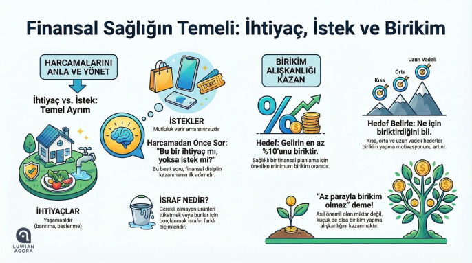 Bu noktada tasarruf kavramı, yalnızca bireysel bir tercih değil; hem kendimiz hem de içinde yaşadığımız dünya için bir umut ışığı hâline geliyor. Tasarruf edebilmenin ilk ve en önemli adımı ise ihtiyaç ile istek arasındaki ayrımı doğru yapabilmektir.